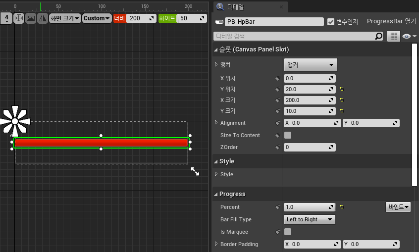 HpBar->SetDrawSize(FVector2D(200.f, 50.f));