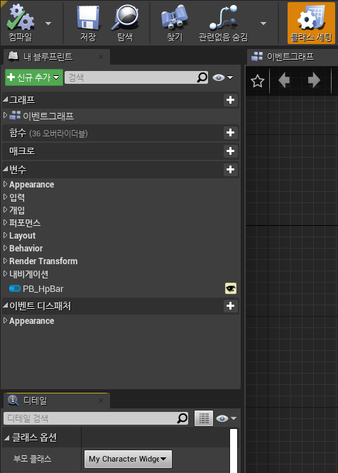 MyCharacter에서 HpBar에 대한 세팅과 BindHp로 바인딩
