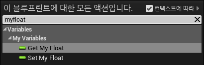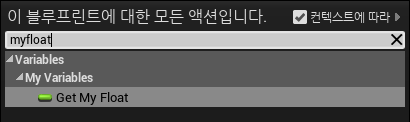 코드를 작성한 후 MyObject_BP의 이벤트그래프에 들어가서 MyFloat와 MyFunction을 검색하고 꺼내는것 까지 정상적으로 작동하는 것을 확인할 수 있다.