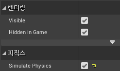 구체 컴포넌트를 만들어서 루트 컴포넌트의 하위 계층에 붙인 뒤, 반지름을 정하고 콜리전 프리셋을 붙인다.