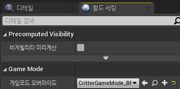 Default Pawn Class만 Critter_BP로 바꿔주고 월드 세팅의 게임 모드를 방금 만든 CritterGameMode_BP로 변경해준다.