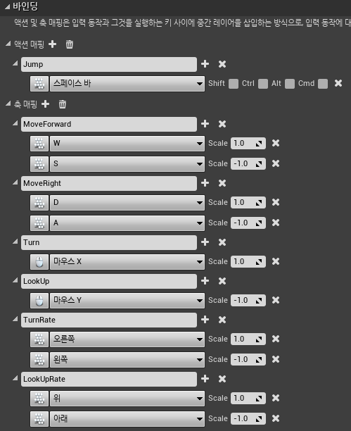 위의 두개는 Pawn의 AddControllerYawInput을 바인딩 하고 아래 두개는 따로 만든것을 바인딩한다.