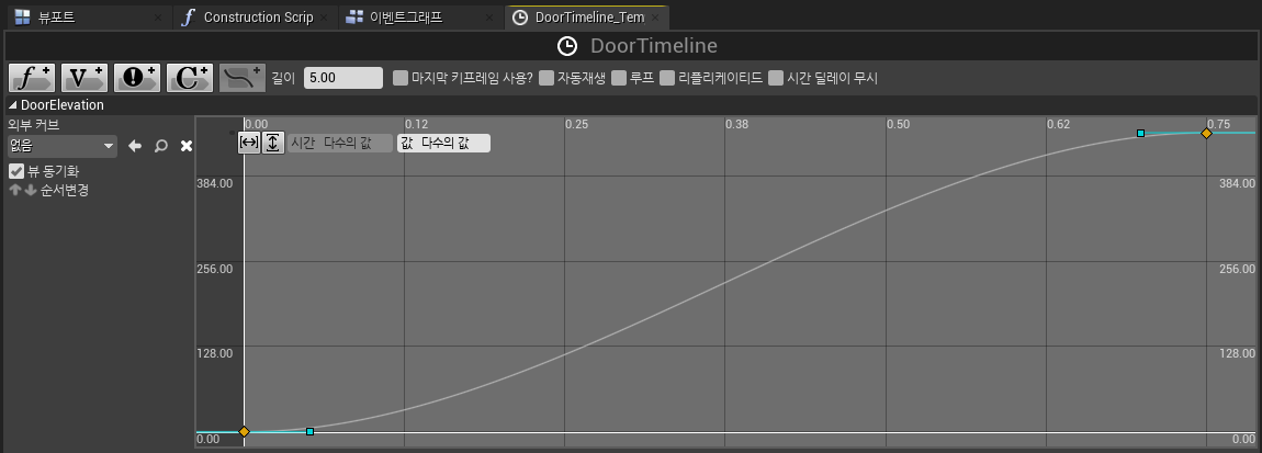 - 블루프린트의 타임라인을 이용해서 문의 자연스러운 움직임을 쉽게 구현할 수 있다.