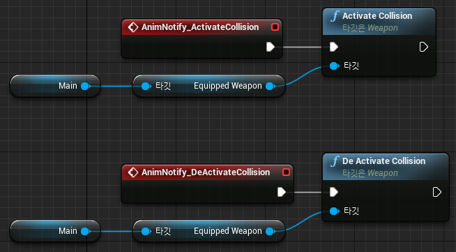 마지막으로 MainAnim_BP에서 노티파이에 대한 처리를 해주면 공격 시 특정 구간에서만 판정이 발생하도록 변경이 가능해진다.
