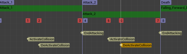 우선 애니메이션 몽타주에 공격 시작과 끝에 해당하는 부분에 노티파이를 설정한다.