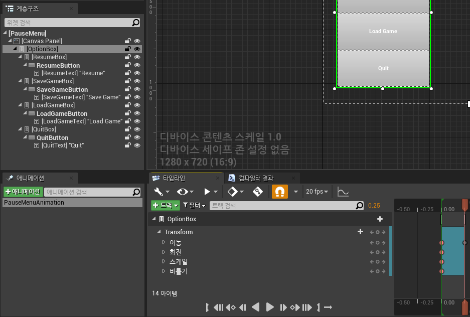 - UI(UMG)에도 키 프레임 애니메이션을 적용시킬 수 있다.
