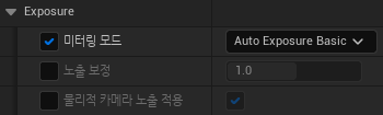 포스트 프로세스 볼륨의 시야 적응(Exposure) 오버라이딩을 통해서 특정 구역에서 과도하게 어두워지는 현상을 수정할 수 있다.