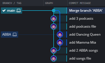 병합을 하더라도 병합 대상의 내용들이 브랜치에 추가되는 것은 한 순간이고 동기화가 계속 이뤄지는것은 아니다. 여전히 별개의 브랜치로 존재한다.