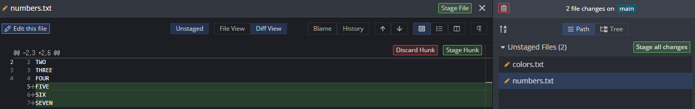 위와 같이 특정 파일에 대한 변경사항만 확인할 수도 있다. 동시에 여러 개의 파일도 가능하다.