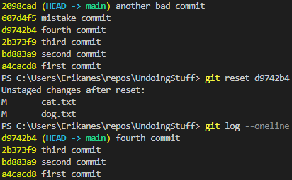 "커밋만" 삭제한다는 점을 주의해야한다. 변경된 사항은 여전히 작업 영역에 남아있다.