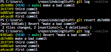 reset과 기능이 매우 유사하다. reset은 커밋을 제거하고 브랜치 포인터를 뒤로 이동시키는 반면에 revert는 새로운 커밋을 만들어서 이전 커밋의 변경 사항을 취소한다.