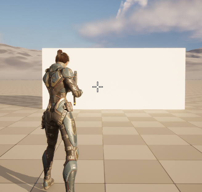 위와 같이 캐릭터가 벽에 근접한 경우 에임은 벽이 아닌 옆을 가리키게 되지만 총구는 벽을 가리키고 있으므로 발사 시 총알이 벽에 가로막혀야 정상일 것이다.
