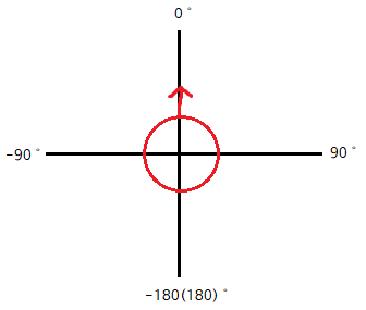언제나 0˚의 기준으로 속도의 방향을 구하기때문에 속도가 0이라면 항상 0˚가 된다.