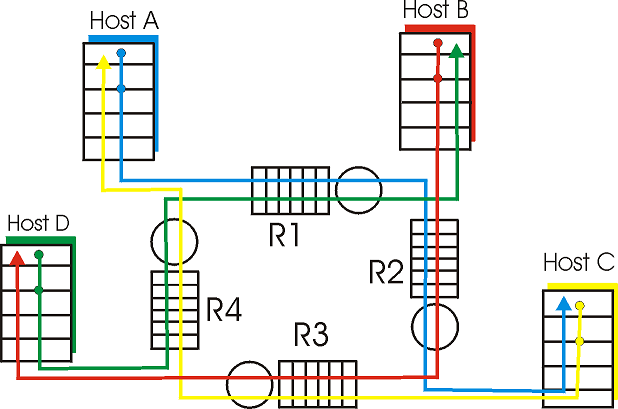각자의 호스트가 데이터를 전송하면 일정 수준까지는 잘 전송되다가 어느 지점에 도달하면 큐가 가득차서 손실이 일어나게된다.