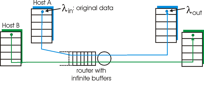 라우터의 버퍼가 무한하기 때문에 손실이 일어나지 않고 재전송도 필요가 없어진다. 또한 흐름제어나 혼잡제어도 수행하지 않는다.