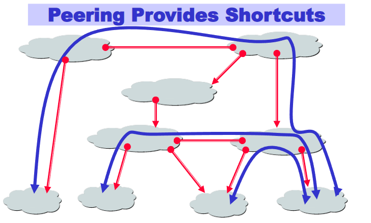 AS가 서로를 필요로 하는 경우는 제공자-고객 관계가 성립되기 어렵기 때문에 피어링이라는 동등한 관계로 맺어진다.