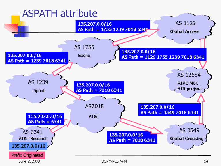 경로 정보를 인접한 AS에게 자신의 AS 번호를 담아서 브로드캐스팅 하면 AS 경로가 누적되어 계속 브로드캐스팅 된다.