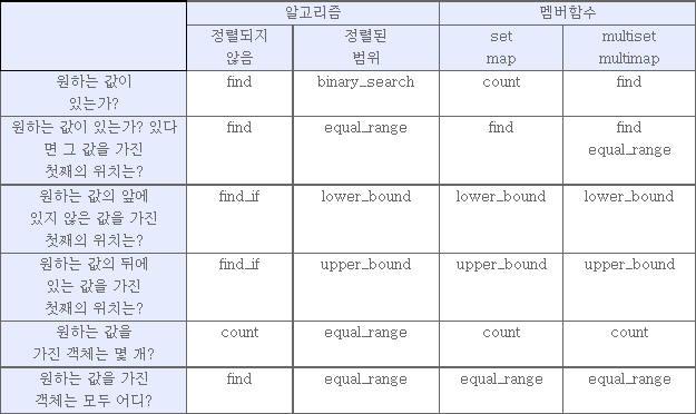 항목45 : count, find, binary_search, lower_bound, upper_bound, 그리고 equal_range를 제대로 파악해 두자