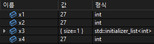 그런데 int를 auto로 바꿨더니 결과가 다르게 나온다. 그 이유는 C++11부터 추가된 초기화리스트 때문이다.