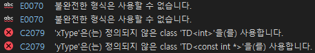 클래스의 정의가 존재하지 않기 때문에 컴파일 오류가 발생하고 친절하게 타입을 알려준다.