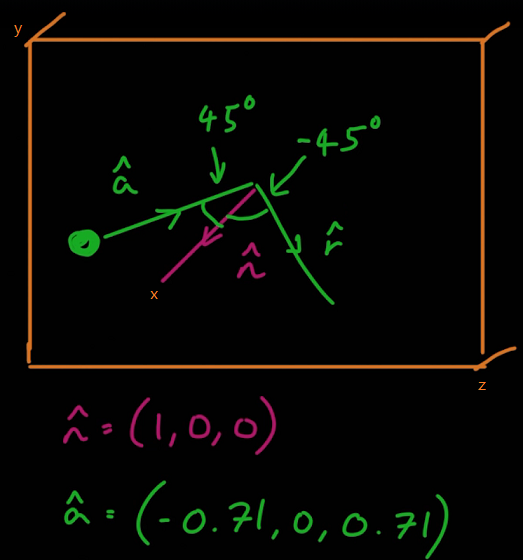두 벡터 모두 크기가 1이기때문에 길이 역시 똑같을 것이다. 하지만 sinθ가 2사분면으로 넘어왔기 때문에 음수가 된다.