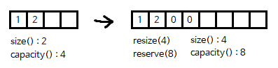 ◾ reserve(size_t n) : 컨테이너의 용량 재설정