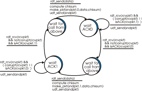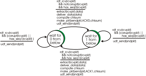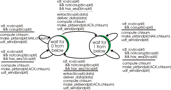 rdt2.0의 FSM. 전송-후-대기 프로토콜 이라고도 한다