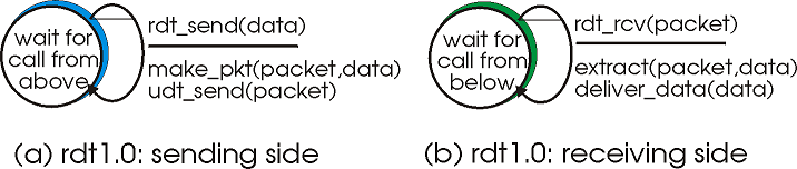 rdt1.0 : 모든 채널이 완벽하게 신뢰적일 때. 호출 받는대로 바로 송수신이 이루어진다.