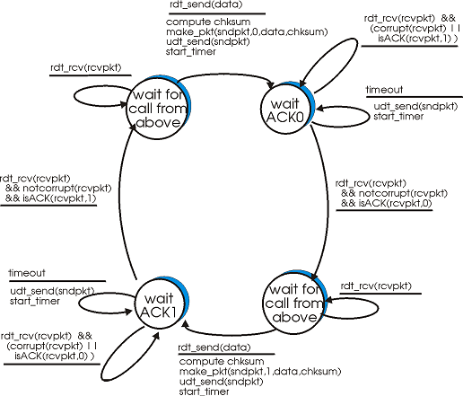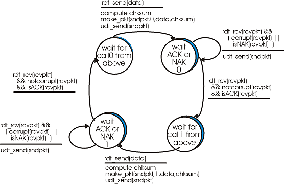 송신자 프로토콜은 수신자의 피드백을 받아야 다음 행동을 결정할 수 있으므로 ACK/NAK 패킷을 기다려야 한다.
