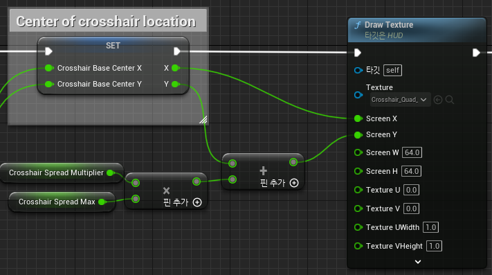 (조준점의 최대 퍼짐값 * 속력 비율) 값을 화면 중앙 기준으로 빼거나 더하면 된다.