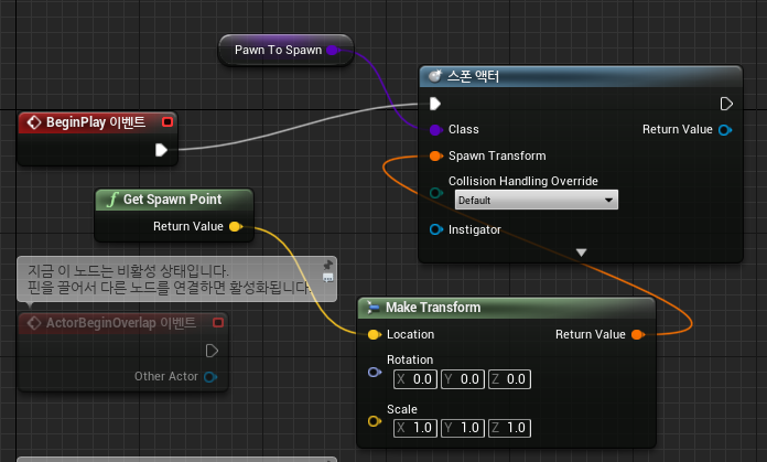 EndPoint의 UPROPERTY 속성에 있는 meta=(MakeEditWidget="true") 옵션은 위의 스샷과 같이 에디터 상에 변수명이 표시가 되며, 해당 변수를 끌어서 위치를 변경할수도 있다.