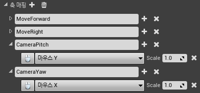 위의 두개는 Pawn의 AddControllerYawInput을 바인딩 하고 아래 두개는 따로 만든것을 바인딩한다.